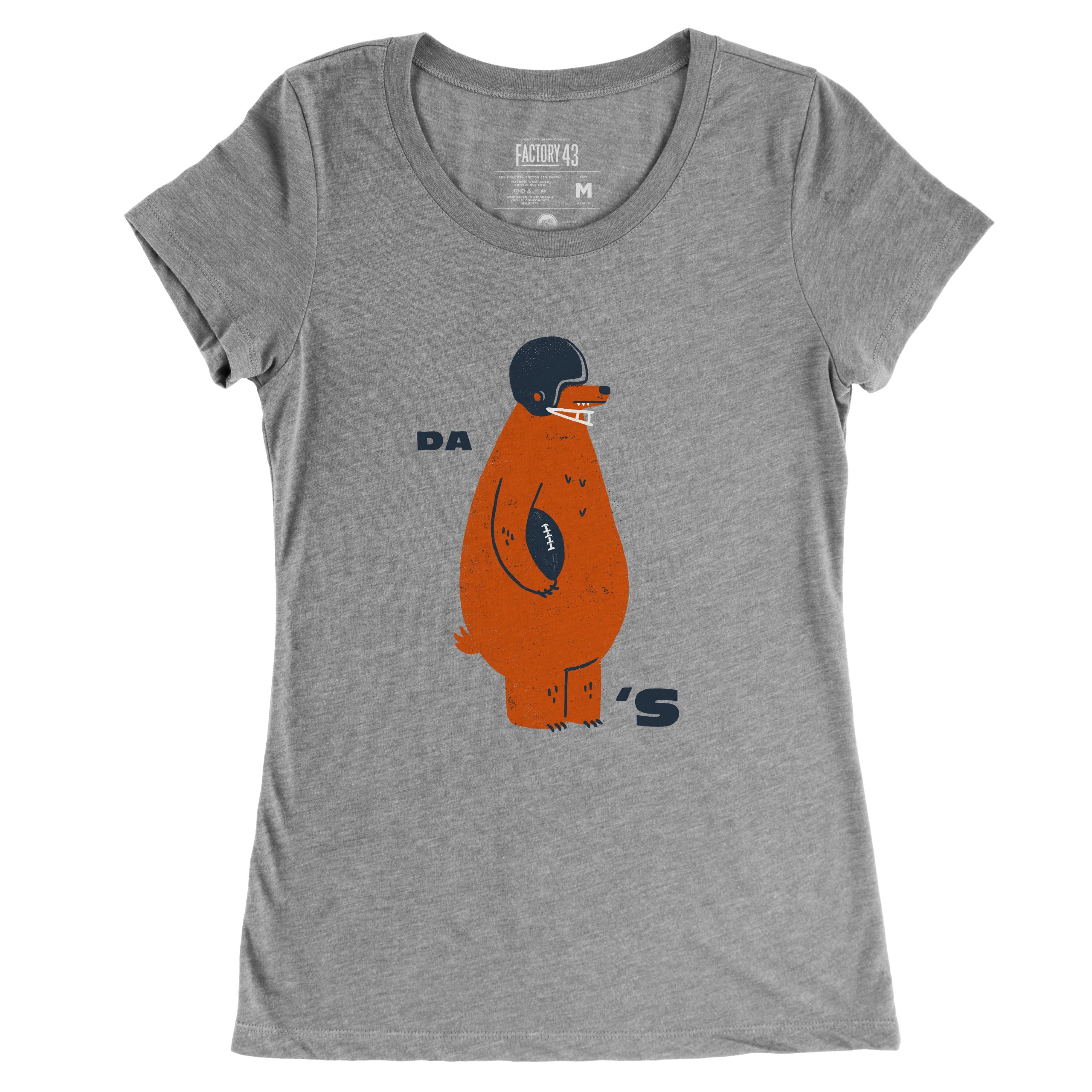 Da Chicago super-soft triblend tee in Gray. Water-based inks. 3.8 oz., 50% polyester, 25% combed and ringspun cotton, 25% rayon blend Slim tee, side seams